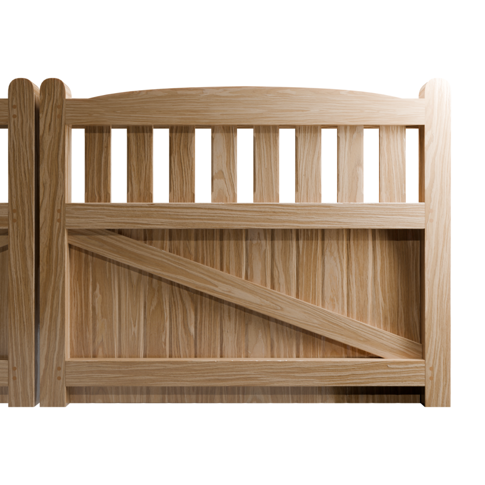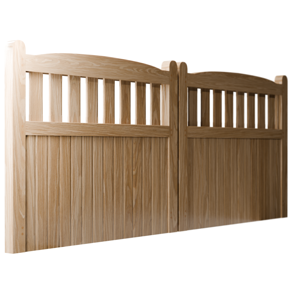 Introducing the Bezděz driveway gate. Bring charm and character to your garden with this beautifully hand-crafted wooden gate, designed for both functionality and style. Featuring a solid vertical board design with an open slatted top, the Bezděz driveway gate provides the perfect balance of privacy and visibility. The gently rounded posts add a touch of traditional elegance, making it an ideal choice for classic and modern landscapes alike. The Bezděz driveway gate is designed to withstand the test of time while enhancing the natural beauty of your outdoor space. Whether marking the entrance to your property or complementing a stylish fence, the Bezděz driveway gate is a timeless addition to any property. The Bezděz driveway gate is available in a choice of 4 unfinished woods for a natural, customizable look. Alternatively, you can select a factory-finish, from our stunning range of stains and premium oils. The Bezděz driveway gate adapts to your unique style. Whether you opt for the raw beauty of larch, the rich tones of iroko, the warmth of sapele, or the classic durability of oak, the Bezděz driveway gate transforms any entrance or driveway into a masterpiece. Durable, versatile, and effortlessly stylish, it is the ultimate addition to your outdoor sanctuary!
