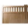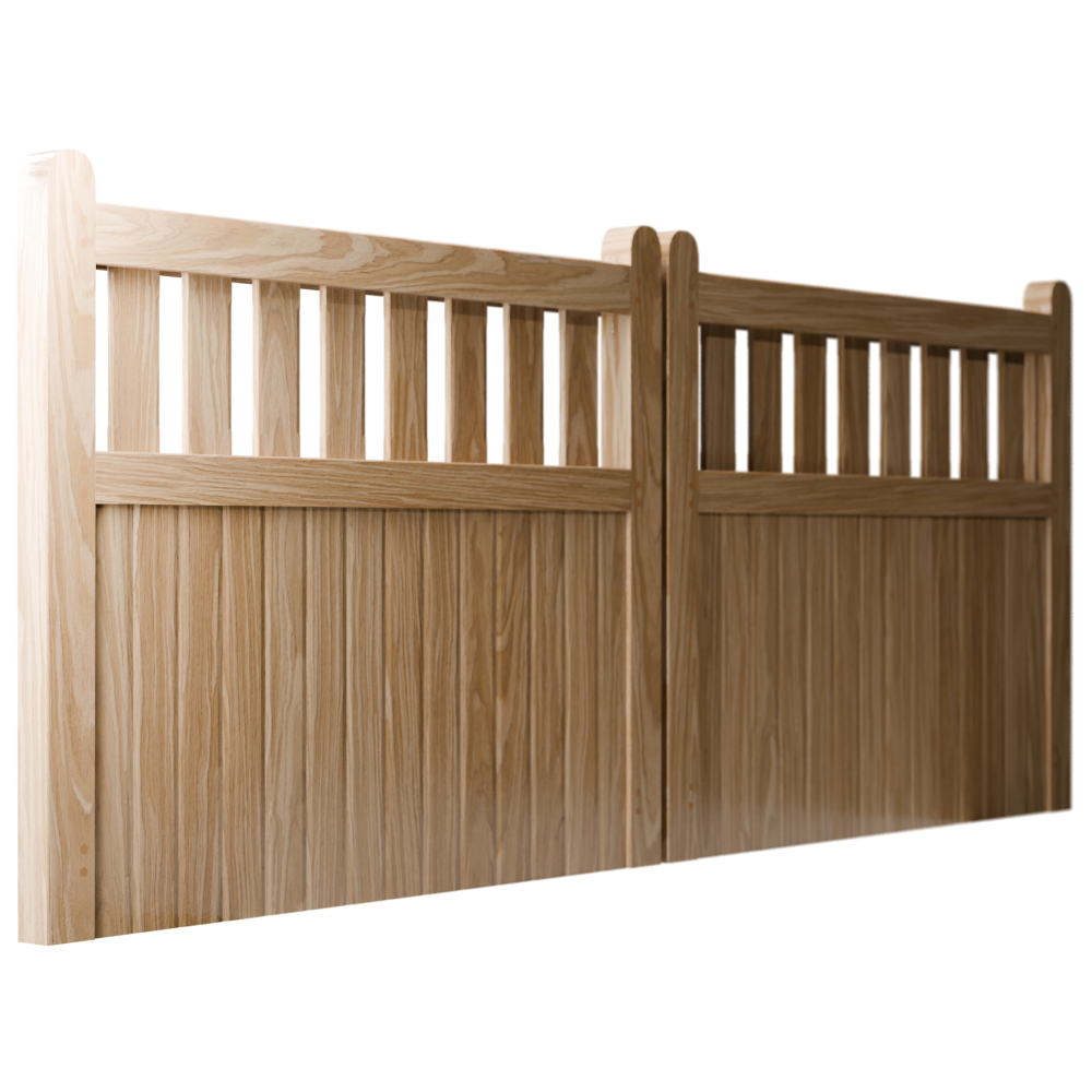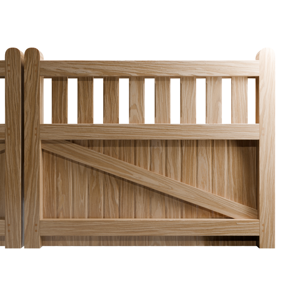 Introducing the Kokořín driveway gate. Bring charm and character to your garden with this beautifully hand-crafted wooden gate, designed for both functionality and style. Featuring a solid vertical board design with an open slatted top, the Kokořín driveway gate provides the perfect balance of privacy and visibility. The gently rounded posts add a touch of traditional elegance, making it an ideal choice for classic and modern landscapes alike. The Kokořín driveway gate is designed to withstand the test of time while enhancing the natural beauty of your outdoor space. Whether marking the entrance to your property or complementing a stylish fence, the Kokořín driveway gate is a timeless addition to any property. The Kokořín driveway gate is available in a choice of 4 unfinished woods for a natural, customizable look. Alternatively, you can select a factory-finish, from our stunning range of stains and premium oils. The Kokořín driveway gate adapts to your unique style. Whether you opt for the raw beauty of larch, the rich tones of iroko, the warmth of sapele, or the classic durability of oak, the Kokořín driveway gate transforms any entrance or driveway into a masterpiece. Durable, versatile, and effortlessly stylish, it is the ultimate addition to your outdoor sanctuary!