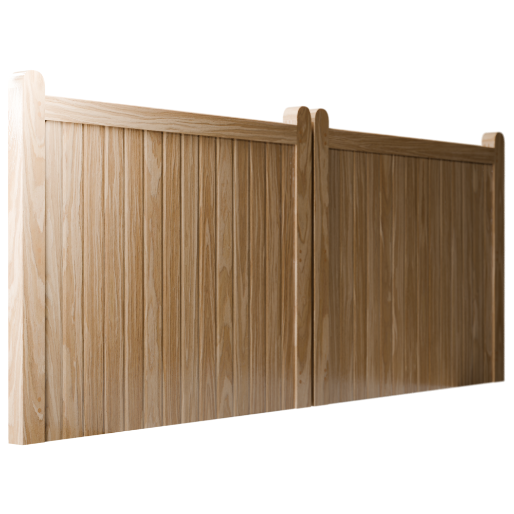 Introducing the Loket driveway gate. The Loket driveway gate is the perfect fusion of durability and classic design. Featuring a full-boarded construction, the Loket driveway gate offers maximum privacy and security, making it ideal for all entrances and driveways. The rounded top posts add a subtle touch of elegance, while the high-quality timber ensures long-lasting performance in any outdoor setting. With its sturdy vertical panel design and reinforced framework, the Loket driveway gate is built to withstand the elements while maintaining its natural beauty. Whether you are looking to enhance a home, cottage garden, or modern outdoor space, this gate delivers both function and aesthetic appeal. A strong and stylish statement piece, the Loket driveway gate is the perfect finishing touch for any outdoor area. The Loket driveway gate is available in a choice of 4 unfinished woods for a natural, customizable look. Alternatively, you can select a factory-finish, from our stunning range of stains and premium oils. The Loket driveway gate adapts to your unique style. Whether you opt for the raw beauty of larch, the rich tones of iroko, the warmth of sapele, or the classic durability of oak, the Loket driveway gate transforms any entrance or driveway into a masterpiece. Durable, versatile, and effortlessly stylish, it is the ultimate addition to your outdoor sanctuary!