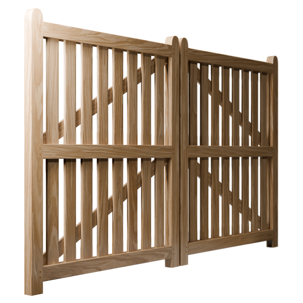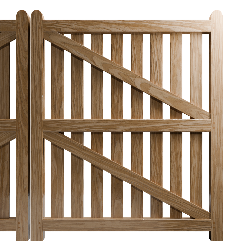 Introducing the Karlštejn tall driveway gate. A perfect blend of rustic charm and sturdy functionality for your outdoor space! Crafted from premium grade natural woods, The Karlštejn tall driveway gate showcases a timeless design with its vertical slat construction, offering both privacy and an inviting aesthetic. The diagonal bracing not only enhances the gate’s structural integrity but also adds a touch of architectural elegance, ensuring it stands strong against the elements while elevating your property’s curb appeal. The Karlštejn tall driveway gate is available in a choice of 4 unfinished woods for a natural, customizable look. Alternatively, you can select a factory-finish, from our stunning range of stains and premium oils. The Karlštejn tall driveway gate adapts to your unique style. Whether you opt for the raw beauty of larch, the rich tones of iroko, the warmth of sapele, or the classic durability of oak, the Karlštejn tall driveway gate transforms any entrance or driveway into a masterpiece. Durable, versatile, and effortlessly stylish, it is the ultimate addition to your outdoor sanctuary!